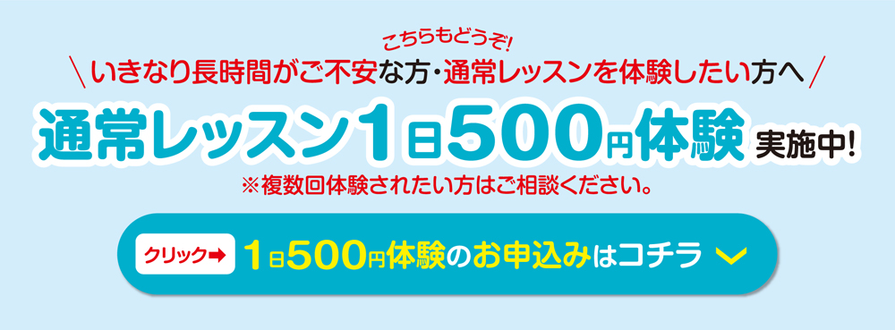 「通常レッスン1日500円体験」を、随時実施しています!