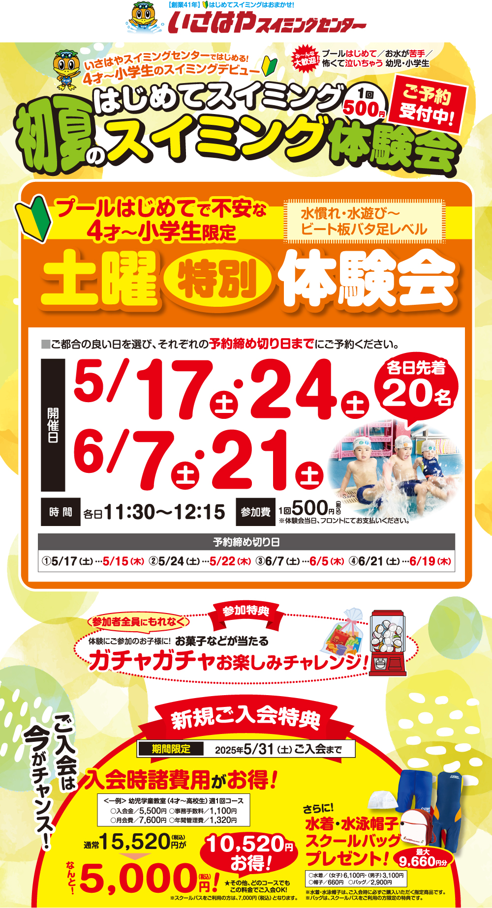 水に顔をつけられないお子様や、顔つけがやっとできる小学校高学年のお子様も、ご安心ください!